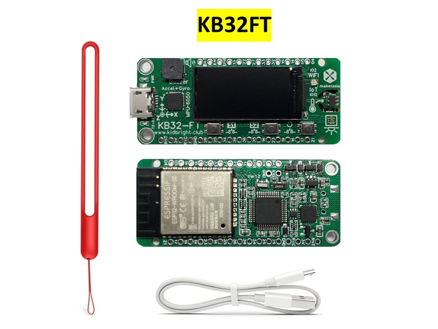 KB32-FT เป็นบอร์ด Microcontroller ขนาดเล็กที่มี WiFi , Bluetooth, จอ TFT LCD และอุปกรณ์อื่นๆ เช่น Accelerometer ,Gyrometer, Buzzer, Temperature sensor, Light sensor, Realtime Clockโดยตัวบอร์ด KB32-FT นั้นมีขาที่ compatible กับบอร์ด Adafruit Feather และยังมี Breakout Board ที่ทำให้ บอร์ด KB32-FT นั้น compatible กับบอร์ด KIDBRIGHT32 V1.5 อีกด้วย Drone Kit ที่ทำให้การเรียนรู้โดรน 4 ใบพัด กลายเป็นง่าย โดยเป็นการใช้งานร่วมกับบอร์ด KB32-FT Kidbright32 Complatible ของทางบริษัทซึ่งชุดโดรนนี้ได้ทำการ Built-in ตัว Battery charger ทำให้สามารถชาร์จแบตเตอรี่ผ่านพอร์ต Micro USB ได้ทันที และเนื่องจากในบอร์ดเราได้มีการติดตั้งเซ็นเซอร์วัดความสูงเอาไว้แล้ว ทำให้น้อง ๆ และผู้ปกครองสามารถใช้ block programming ควบคุมการบินโดยกำหนดระยะความสูงได้เลย และเนื่องจากบอร์ด KB32-FT นั้นมีจอ TFT LCD ติดตั้งไว้ทางด้านบนของบอร์ดทำให้สามารถแสดงสถานะต่างๆของการบินได้ด้วย ไม่ว่าจะเป็นความสูงระดับแบตเตอรี่ระยะเวลาบินหรือ มุมขณะบิน ซึ่งจะมีตัวอย่างการเขียนโปรแกรมรวมทั้ง Library ที่สามารถมารถพัฒนาต่อยอดได้ง่าย รองรับการเขียนโปรแกรมด้วย Code เช่น Arduino IDE และ Block programming เช่น KidBright IDE, KBIDE เป็นต้น พร้อม Application ในการควบคุมการทำงานด้วยตัวเอง ซึ่งรองรับการใช้งานได้ทั้งฝั่ง Android และ IOS